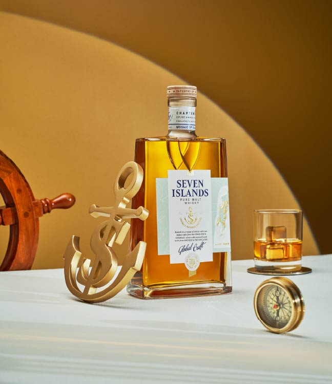 Step into a world shaped by confluence with Seven Islands Pure Malt Whisky, an Indo-Scottish expression that celebrates the coming together of cultures, climates, and craft. Inspired by the seven islands that formed then Bombay, this whisky is a tribute to a city built through connection, transformation, and movement.